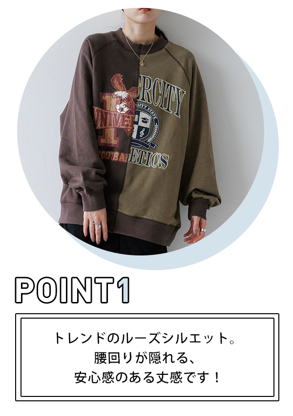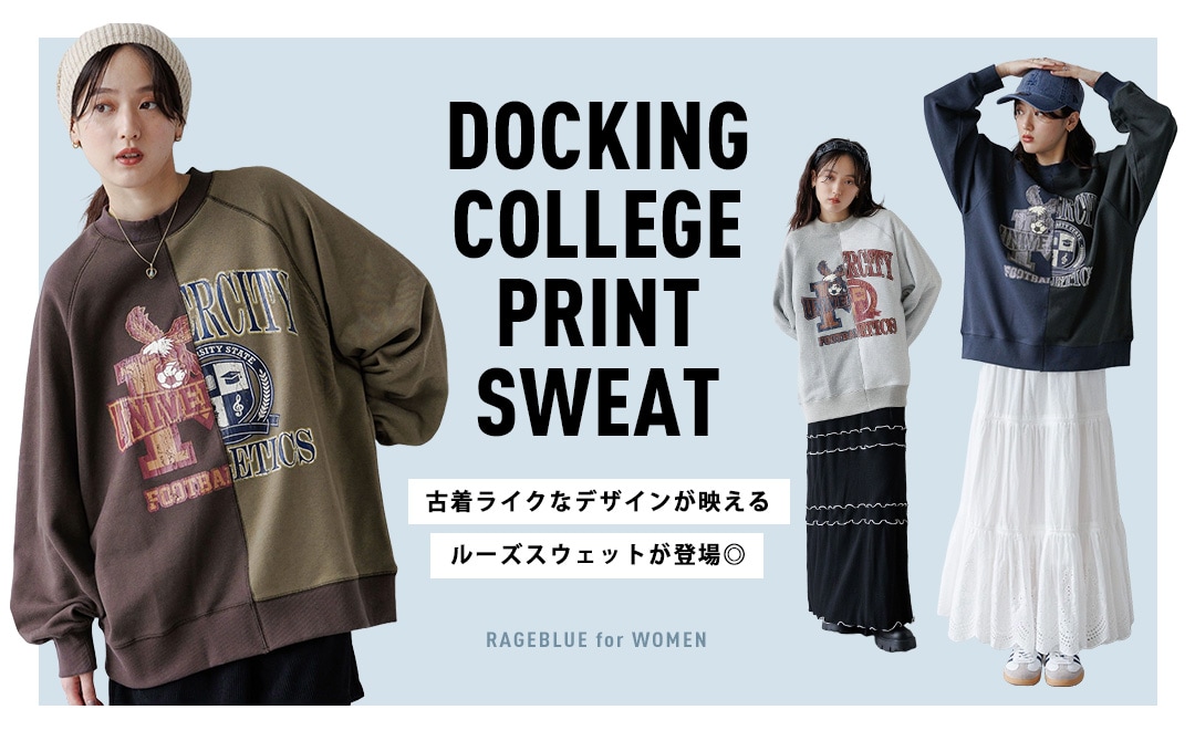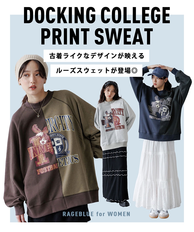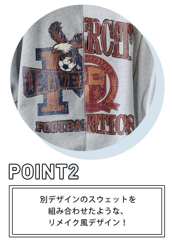 【WOMENS】リメイク風/ドッキングカレッジプリントスウェット