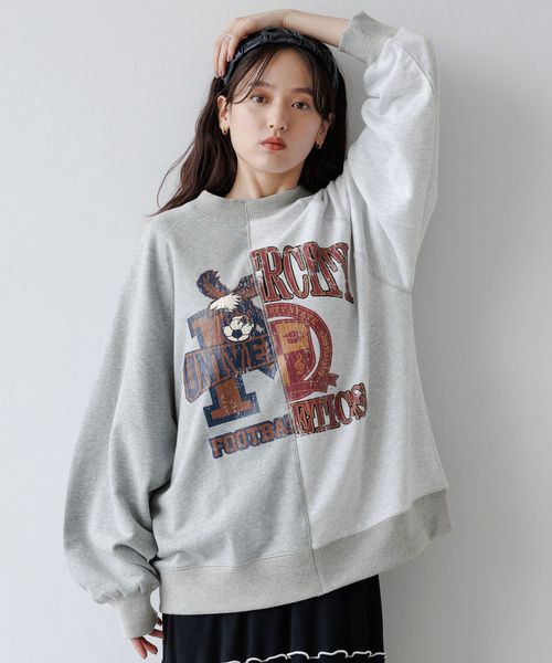 【WOMENS】リメイク風/ドッキングカレッジプリントスウェット