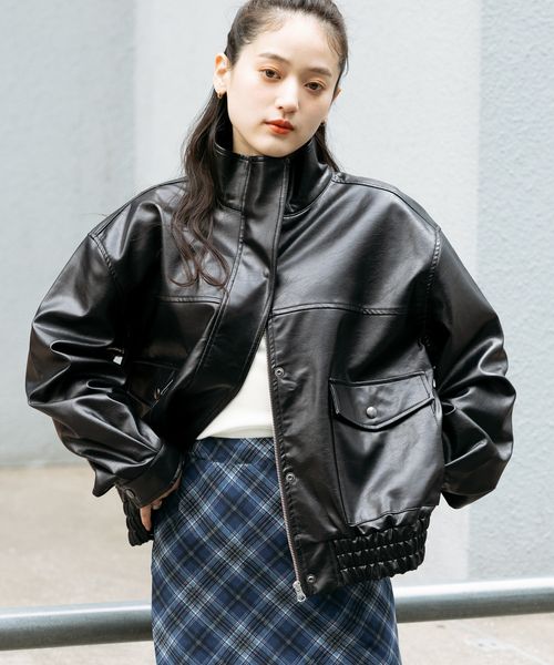 【WOMENS】<選べる2デザイン>スタンドカラー/フェイクレザージャケット