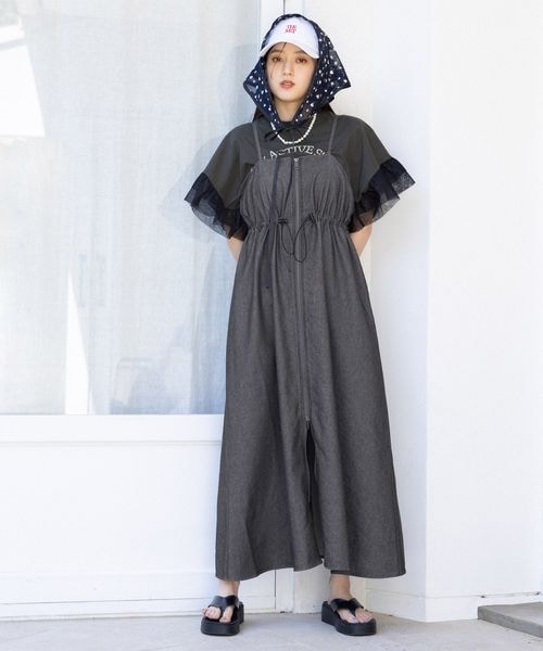 【WOMENS】フロントジップ/デニムキャミワンピース