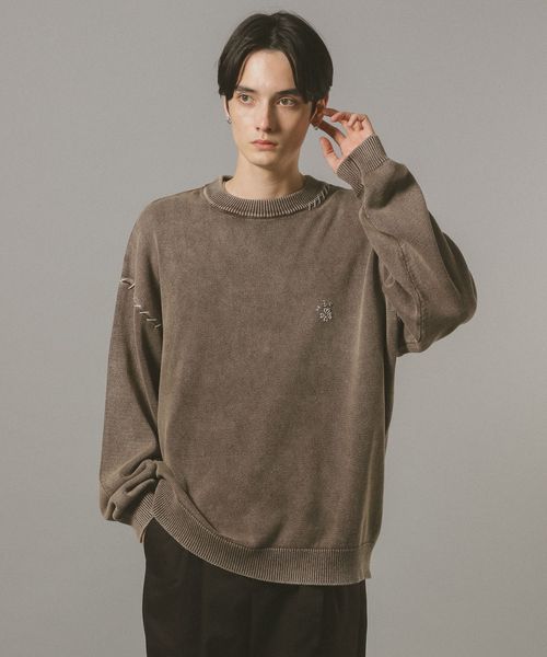 ピグメント加工/モチーフ刺繍ニット