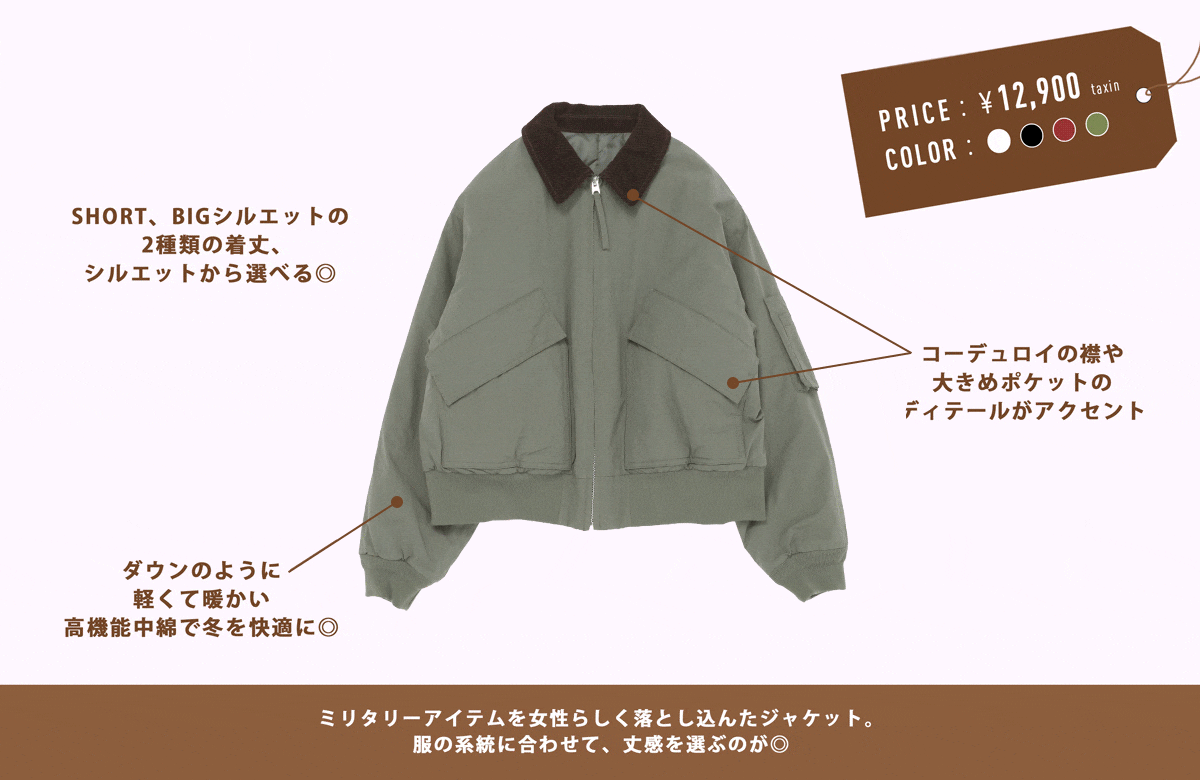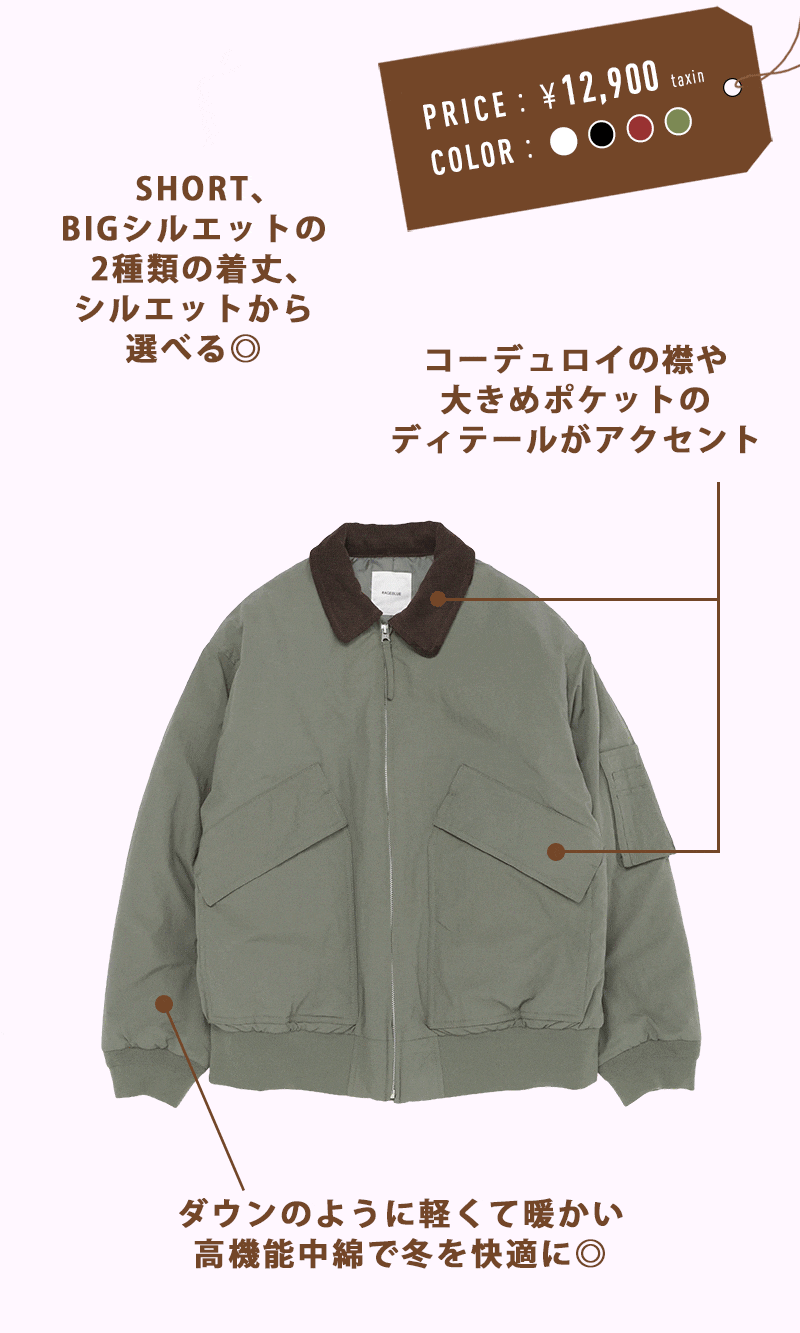 【WOMENS】選べるシルエット/中綿フライトジャケット