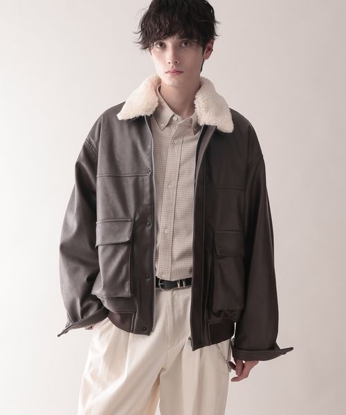 【AIRTHERMAL/エアサーマル】襟ボア/フェイクレザージャケット
