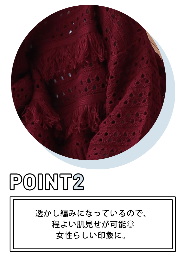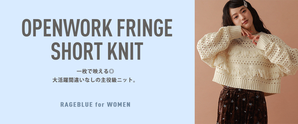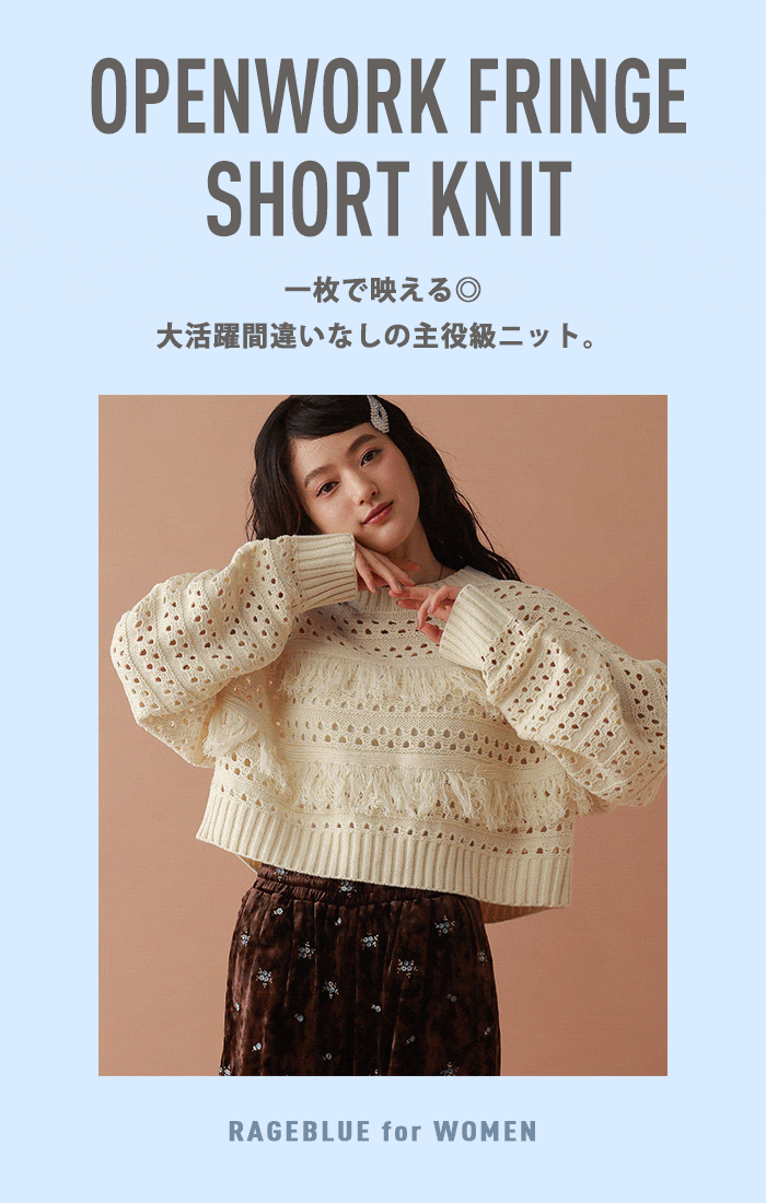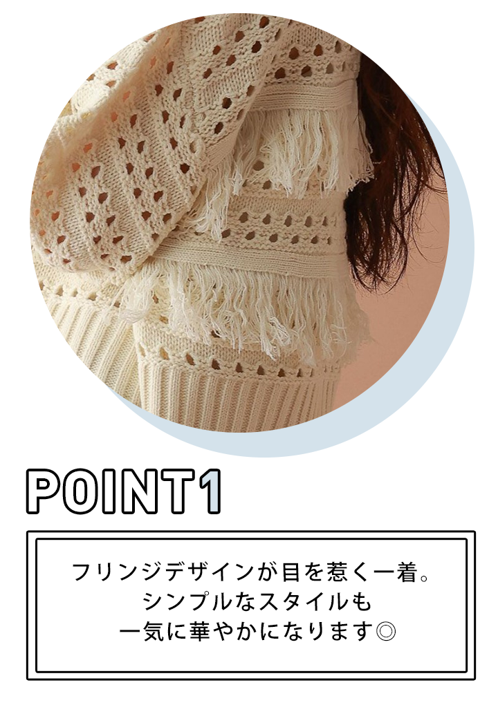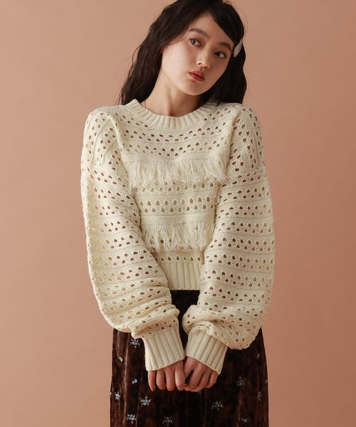 【WOMENS】透かし編みフリンジショートニット