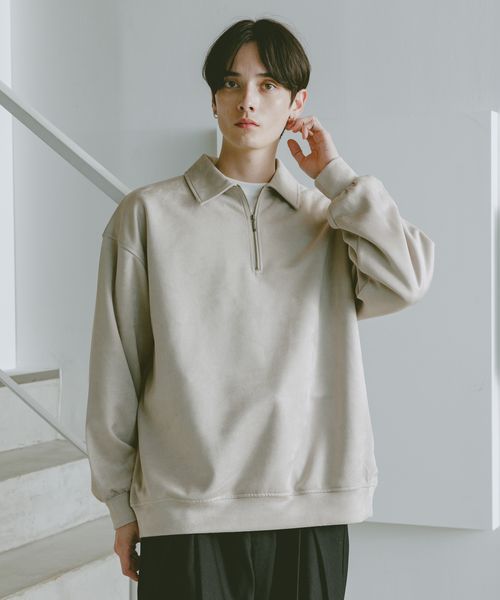<先行予約>カットスウェード/ハーフジップスウェット
