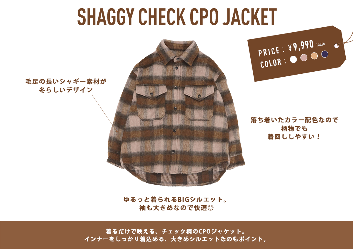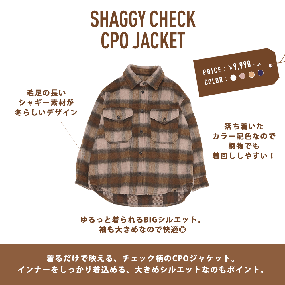 【WOMENS】シャギーチェックBIG CPOジャケット