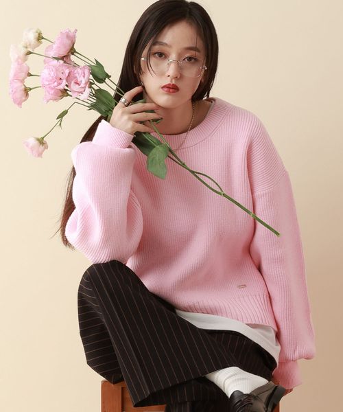 <先行予約>【WOMENS】<Bloomy Yarn Kint>アゼ編みルーズクルーネックニット