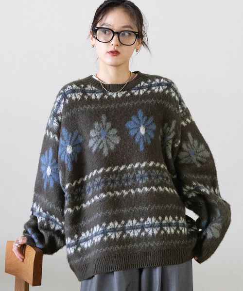 <先行予約>【WOMENS】ノルディック柄ルーズニット