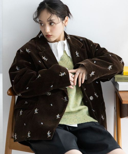 <先行予約>【WOMENS】フラワー刺繍/ベロアテーラードジャケット