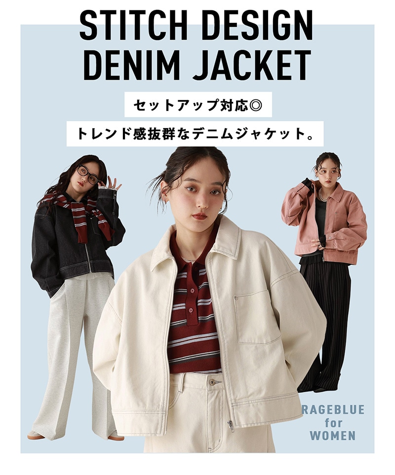 【WOMENS】ステッチデザイン/カツラギデニムワークジャケット/セットアップ対応