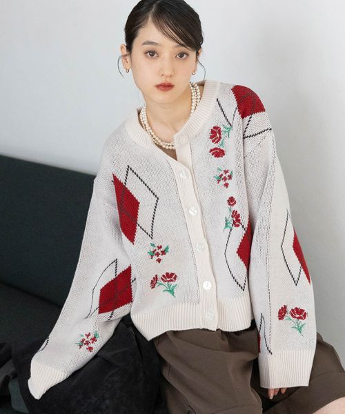 <先行予約>【WOMENS】フラワー刺繍ニットカーディガン