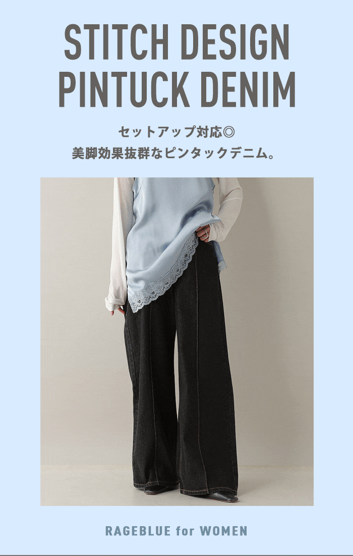 【WOMENS】ステッチデザイン/ピンタックデニムパンツ/セットアップ対応