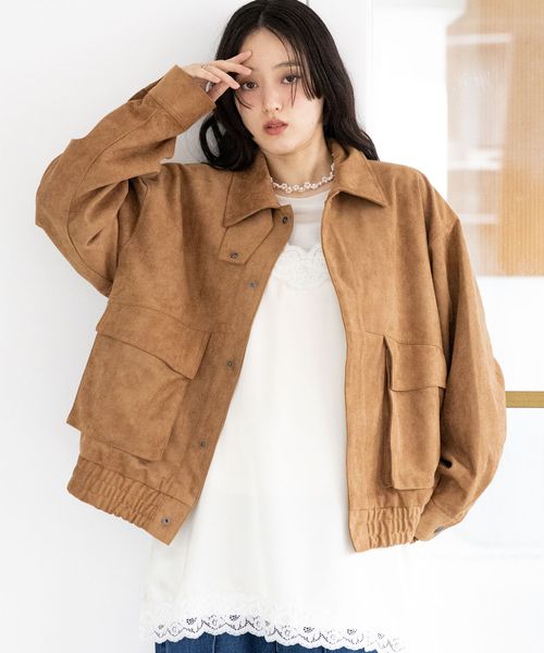 【WOMENS】フェイクレザー/スウェードブルゾン
