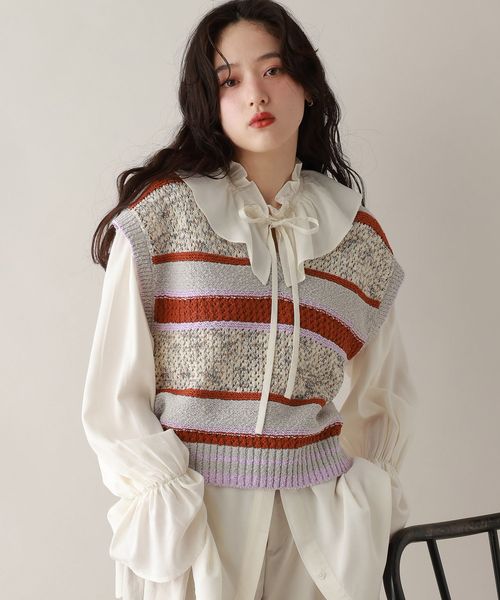 <先行予約>【WOMENS】マルチボーダーニットベスト