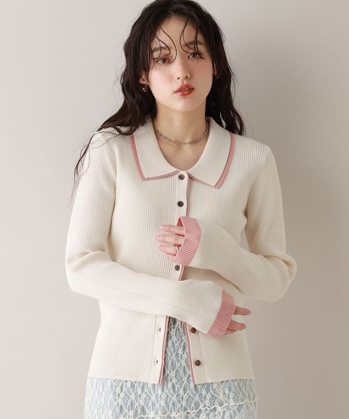 <先行予約>【WOMENS】バイカラーリブニットポロカーディガン