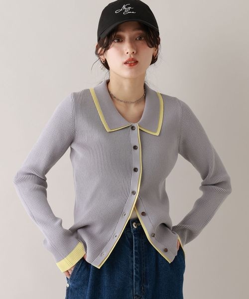 【WOMENS】バイカラーリブニットポロカーディガン