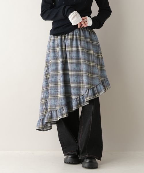【WOMENS】レイヤード/アシメチェックスカート