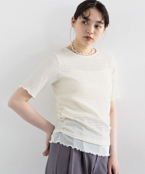 <先行予約>【WOMENS】裾レイヤードシャーリングトップス