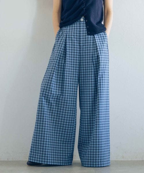 【WOMENS】ミニチェック/サイドタックワイドパンツ