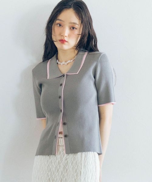 <先行予約>【WOMENS】バイカラーリブニットポロカーディガン