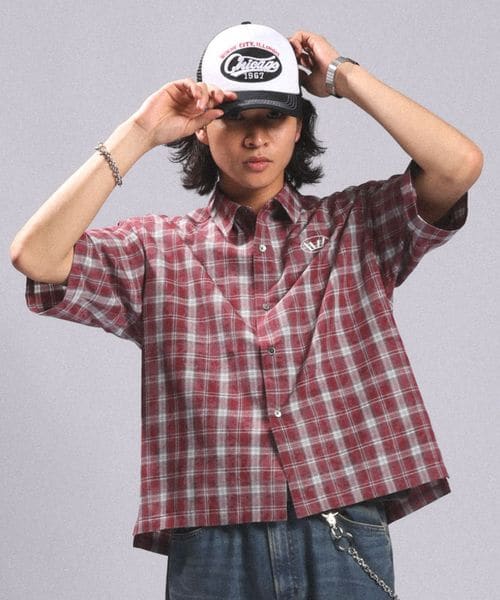 クラウン刺繍/ショート丈チェックシャツ
