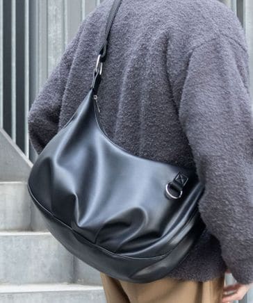 シンセティックレザーコンビ/タックラウンドショルダーバッグ