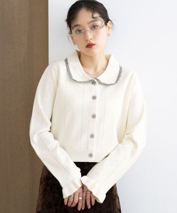 【WOMENS】アイレット編み/クロシェカラーコンパクトカーディガン