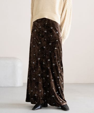 【WOMENS】フラワー刺繍/ベロアナロースカート
