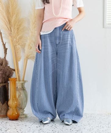 <先行予約>【WOMENS】ストライプデニムワイドバルーンパンツ