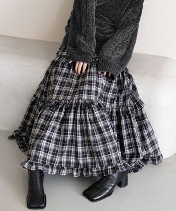 【WOMENS】ボリュームチェックフリルティアードスカート