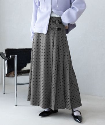 【WOMENS】選べる着丈/Wベルトドットプリーツキルトスカート