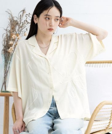 【WOMENS】コード刺繍/フラワーモチーフシャツ