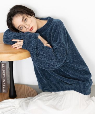 【WOMENS】ボリュームスリーブ/袖デザインモールニット