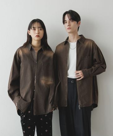 【UNISEX】ヴィンテージ加工/ショート丈ダブルジップパーカー