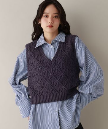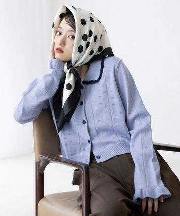 【WOMENS】アイレット編み/クロシェカラーコンパクトカーディガン