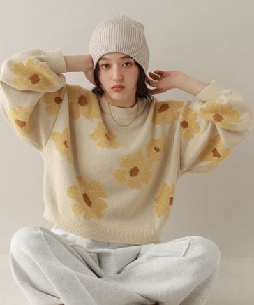 【WOMENS】選べるシルエット/シャギーフラワーニット