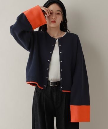 <先行予約>【WOMENS】ロールアップデザイン/バイカラーニットカーディガン