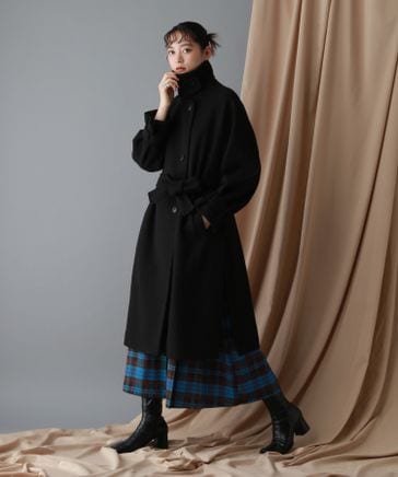 【WOMENS】<WOOLLYTEC/ウーリーテック>2WAYスタンドカラーロングコート