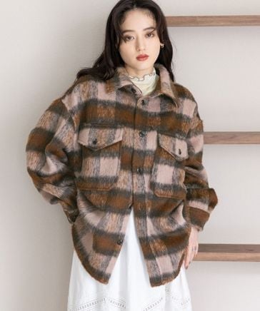 【WOMENS】シャギーチェックBIG CPOジャケット