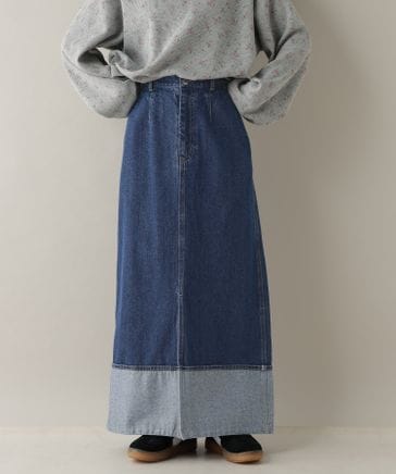 【WOMENS】ステッチデザイン/フロントスリットデニムスカート/セットアップ対応