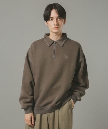 ピグメント加工/ダンボールハーフジップスウェット