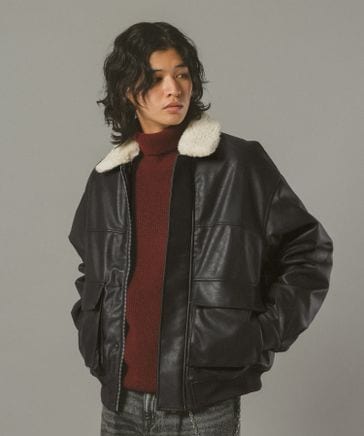 【AIRTHERMAL/エアサーマル】襟ボア/フェイクレザージャケット