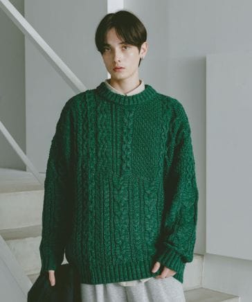 <一部カラー予約>【woolmoch】アゼ編みニットクルー