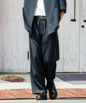 配色ステッチ/ワイドワークパンツ【セットアップ対応】