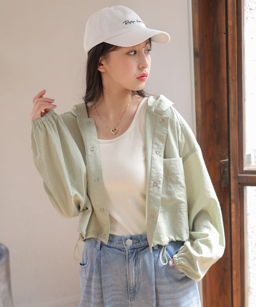 【接触冷感/UVカット機能】スパンボイルショートパーカー