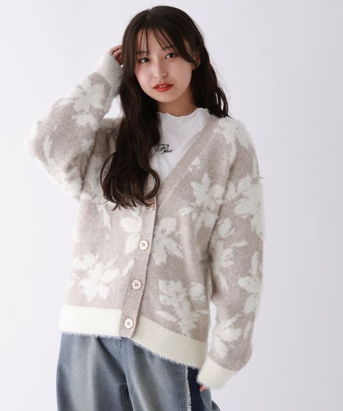 【洗えるニット】FLOWERシャギーカーディガン