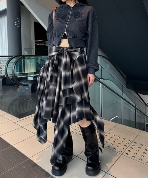 【新色予約受付中】チェックシャツレイヤーフウスカート