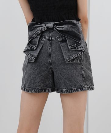 バックリボンデニムショートパンツ