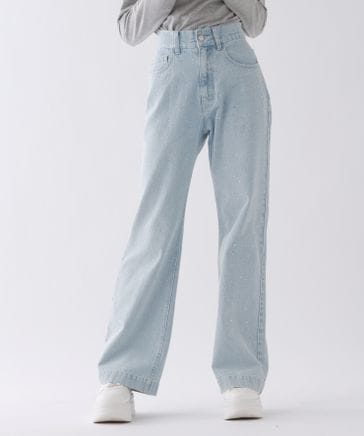 【一部カラーTALLサイズ有】トキメキビジュ―デニムパンツ