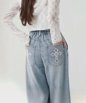 【一部カラーTALLサイズ有】トキメキビジュ―デニムパンツ